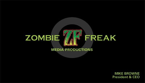 I’m beginning the process of incorporating a film production company. I’m calling it ZombieFreak Media Productions (I’ll add LTD or INC later). Here’s the design I came up with a logo and business card design. I’ll put all the info, like phone number and email on the back of it before it goes to the printer but I’m not posting it here. Spammers and telemarketers = Blech! Anyway, here’s the card:
