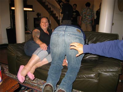 Anyway, one of the gals was taking pictures of the bottoms of a lot of the male crew members with Dave’s camera. We weren’t sure if mine was there or not, so Justine Bateman volunteered to snap a picture of my rear to help me feel included: