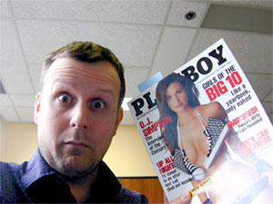 I came to work this morning and my boss had put this copy of Playboy containing Girls from the Big 10 colleges in the US on my desk: