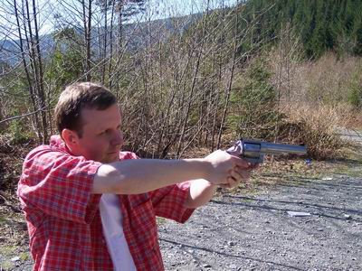 For someone who’s not used to shooting I did fairly well blasting away at pop cans and other things. No one got hurt, although from the look of , it appears I was about to shoot myself in the crotch.