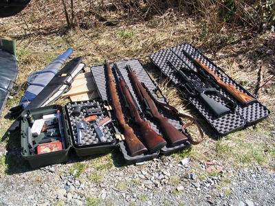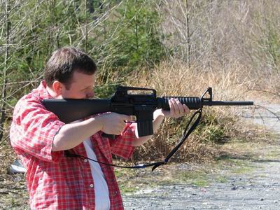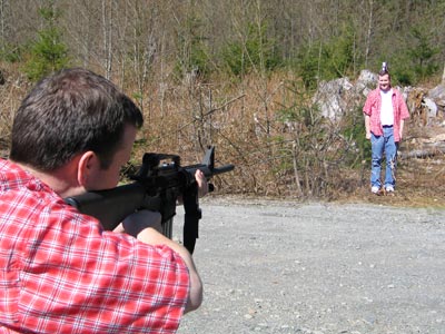 Anyway we had a great day. Joe took us on a tour of the Microsoft campus, where he works, then took us 4-wheeling out in the woods to endulge us in his hobby – shooting. We literally had a blast. Joe has quite and arsenal. . Although he only took a portion of it, there were still . I got to fire a (Dirty Harry’s gun) as well as various others like the ones we use in the game. My favourite, however, was the (a.k.a. the M-16).