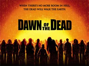 Carol and I saw Dawn of the Dead on Saturday night. We give it two very enthusiastic undead thumbs up. This was a fun remake flick. If you like horror movies, especially zombie movies, this one is for you. I was grinning like a tool from the first zombie filled moments. The updated zombies were scary as hell. If you’re a fan of the original films you’ll take note of a few familiar lines and faces.
