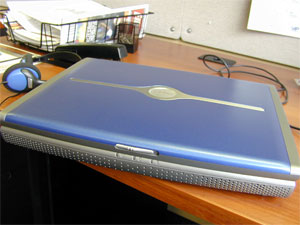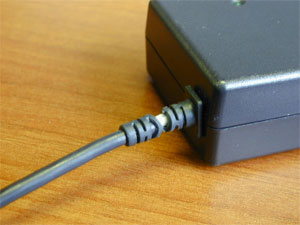 Dude, my Dell is sick and am I ever sad. . I had noticed that the power input from the AC adapter had been separating from the coverter for about a month. Today it gave up the ghost. I saw that even though the computer was plugged in it was still on battery power. I checked all the plugs and everything was plugged in properly. Still nothing. The next step, naturally, check along the power cord for breaks and there it was the line out was separating from the box. I wiggled it and zap (15kb Wav) I gave myself quite the shock. Yeow! (7kb Wav)