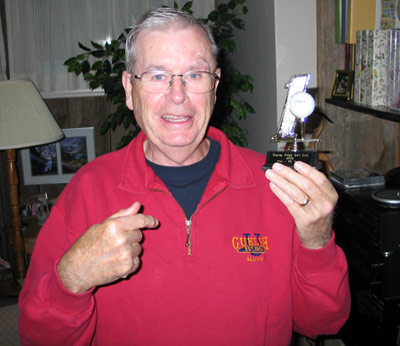 It’s Dad’s 68th birthday today. Dad is pictured here with his prize hole in one trophy. He got it after golfing for only a few years. Nicely done.