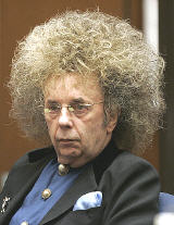Phil Spector, as seen in this article, also has shitty taste in personal hairdos. Looks to me like he’s having some kind of ultra-strange Supah-fly slash Tim Burton style collision. I’ll bet there’s birds and a family of voles living in there. No doubt Jimmy Hoffa is somewhere in that tangled mess as well. Is there possibly an ‘insanity plea’ in the works? If there’s not there should be. Obviously this man is in no way capable of understanding the charges against him. This has to be an accident. An no it’s not a Photoshop job, sad to say. Why on Earth someone would set foot outside the hair salon with a do like that truly has me stumped. OMG, he’s whacked.