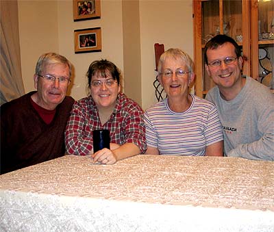 Ma and Pa Browne, pictured above with Carol and I, have been here since Thursday. They dropped in on their way back home to Nova Scotia from New Zealand. They’ve been a big help with prepping our house for sale. Dad loves the fix-it stuff so we’re taking advantage of it. I’ll get copies of Dad’s New Zealand photos and post some later on. If you’ve been trying to get in touch with me they’re the reason my phone’s been turned off. I only get to see them, if I’m lucky, once a year so call me on Monday.